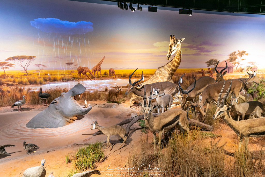 最让我感到欣喜的是,这个博物馆竟然把动物世界搬到了室内。你能想象在博物馆的三楼有三个展厅,主要展示的就是生物的多样性,里面竟然藏着世界上的很多动物标本吗?一走进去如果没留神,真的以为自己到了真正的非洲大草原。