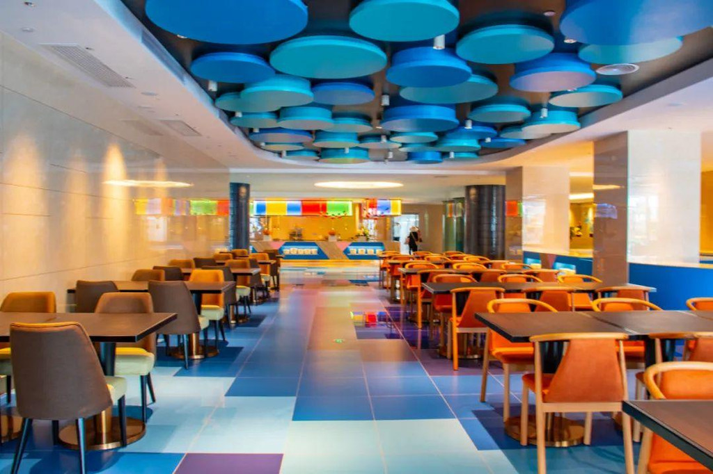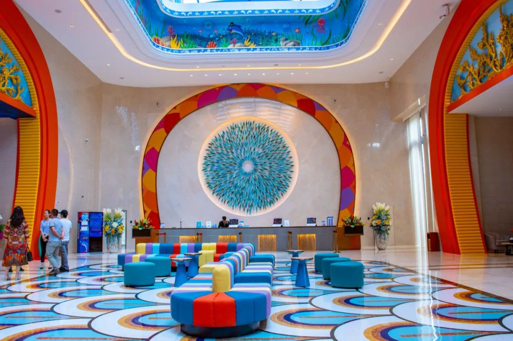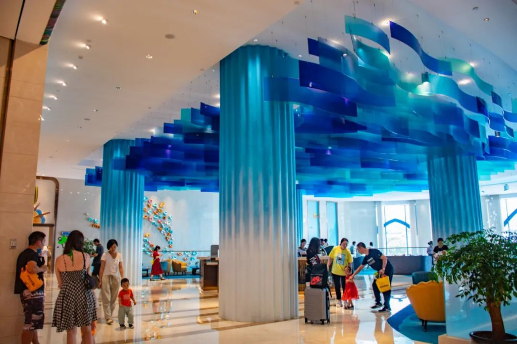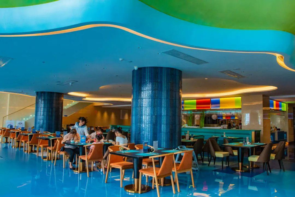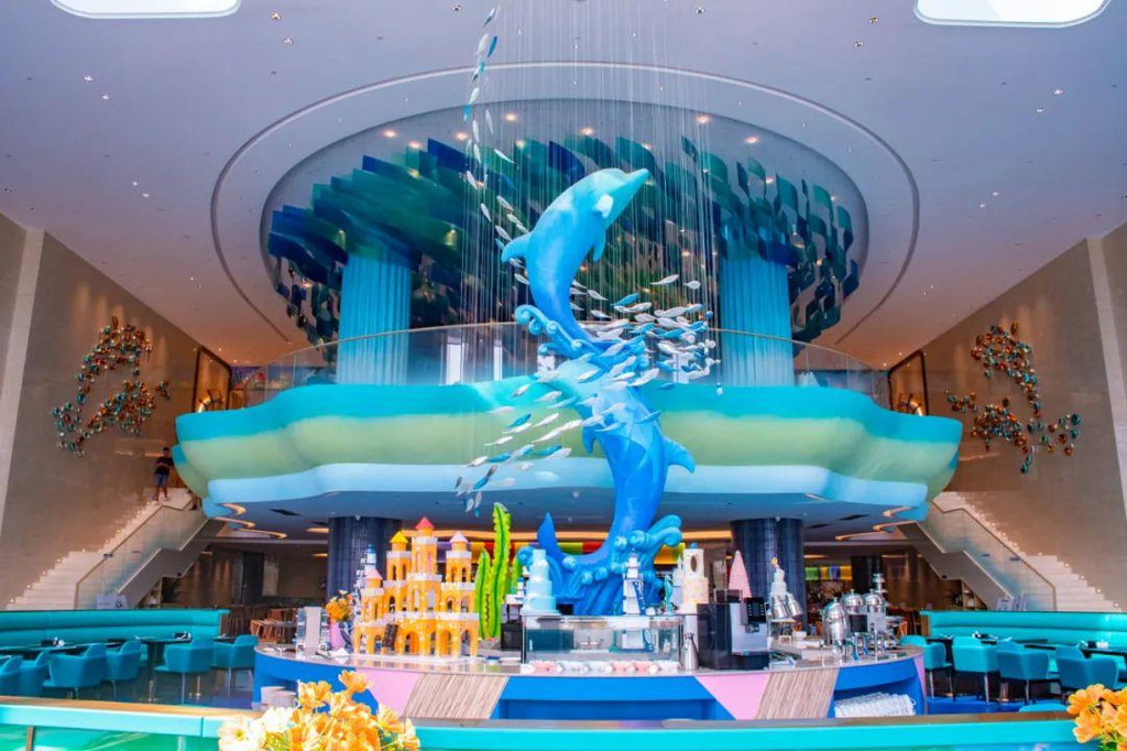 海豚湾亲子酒店不论是建筑外部或内部装饰,亦或餐厅、房间都围绕“海洋风”打造,琳琅满目的海洋元素,海豚造型、美人鱼表演馆,这些吸睛元素都能在这里找到。