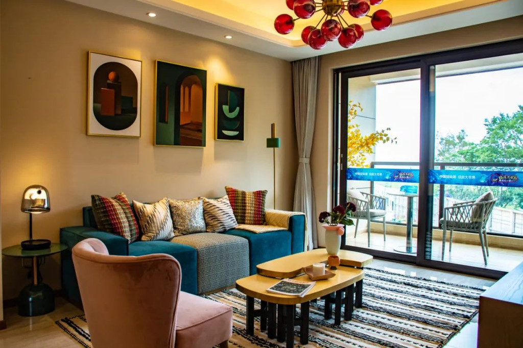 房间内部的颜色搭配和布局更会让你感受到浓浓的海洋风,鲜艳的色彩与明亮的灯光,映衬出一个热情似火的热带海洋。