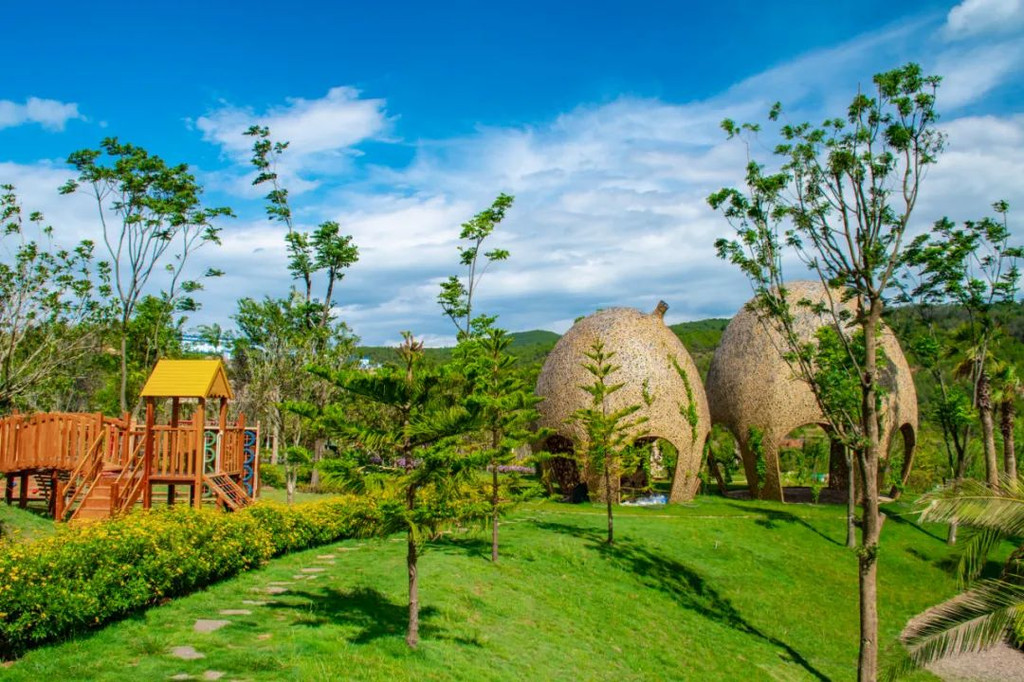 让孩子穿梭在亲子农场的游乐项目中,爬山、钻洞,无拘无束,尽情玩耍。