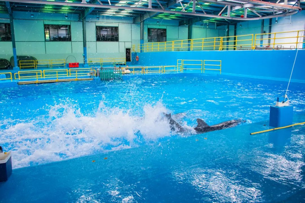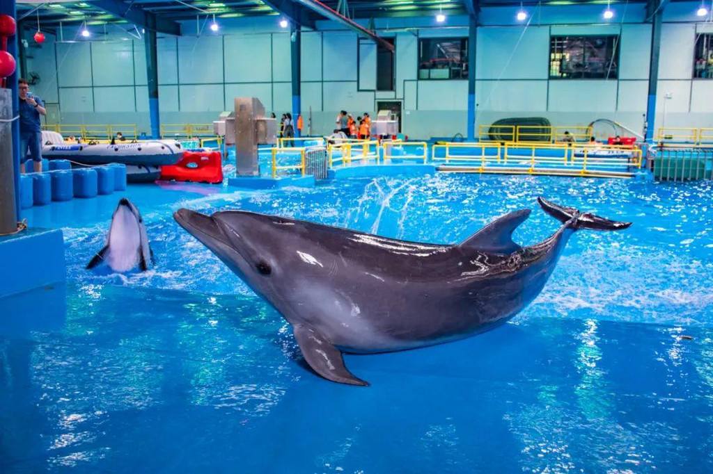 面积极大的深水区,被区分为若干个水池,而32只海豚就生活在这些池子内,从入口进来就能听到海豚嘹亮的叫声,穿过层层阻力,直击心底!