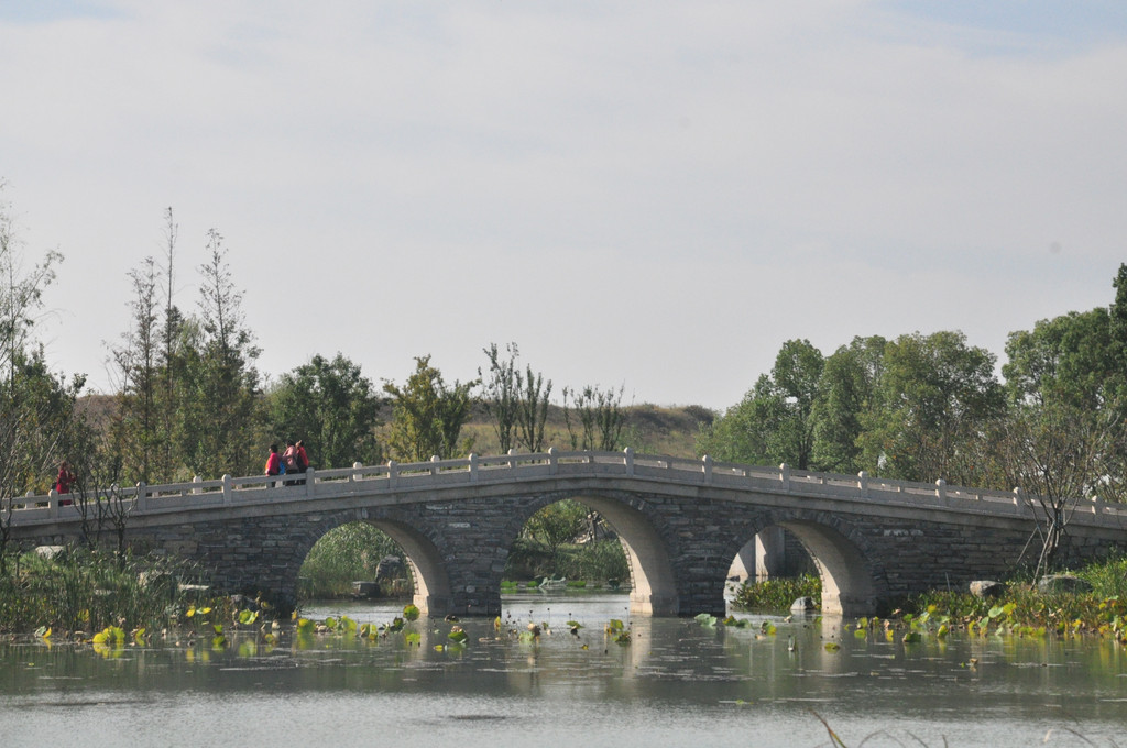 2021年10月18日早晨7点在莫泰酒店吃过自助早餐,饭后将行李存入总台。在火车站乘1路公交到百货大楼转5路车前往阜阳颍州西湖景区,颍州西湖距市区较远,乘公交大概约40分钟左右。现在的颍州西湖刚刚恢复重建,属于开发建设期,初显雏形。5路车走景区北门,该入口除了建好的一个牌坊,尚无景区大门,为了防疫,通往景区的入口拦了路障,工作人员要求游客扫码,出示身份证,免费入内。