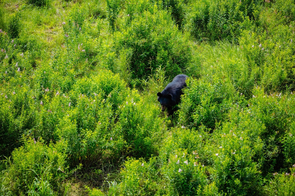 乘坐游览专车一路可以欣赏憨态可掬的黑熊们。夏日,有些黑熊喜欢挂在树杈上睡觉,姿态相当萌。遇到观景平台,不要忘记买一桶食物,可近距离投喂黑熊哦!