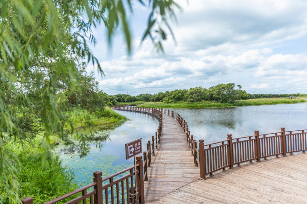 一条环岛栈道,让人们可以近距离的走进它,感受它的美。这里良好的植被和水文条件,为各种野生动物提供了优越的栖息和繁衍场所,造就了丰富的湿地动物多样性。