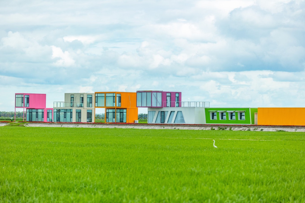 景区有以集装箱为外形,绘制了个性涂鸦的集装箱民宿,房间精致温馨、功能一应俱全,可以体验到“睡在稻田里,枕着稻花香”的感受。