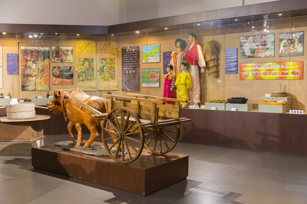 民俗展厅内从服饰、民居、民间工艺、饮食、礼仪、生产工具等各个方面,展示了 东北 汉民族、 朝鲜族、满族三个民族的民间风俗。