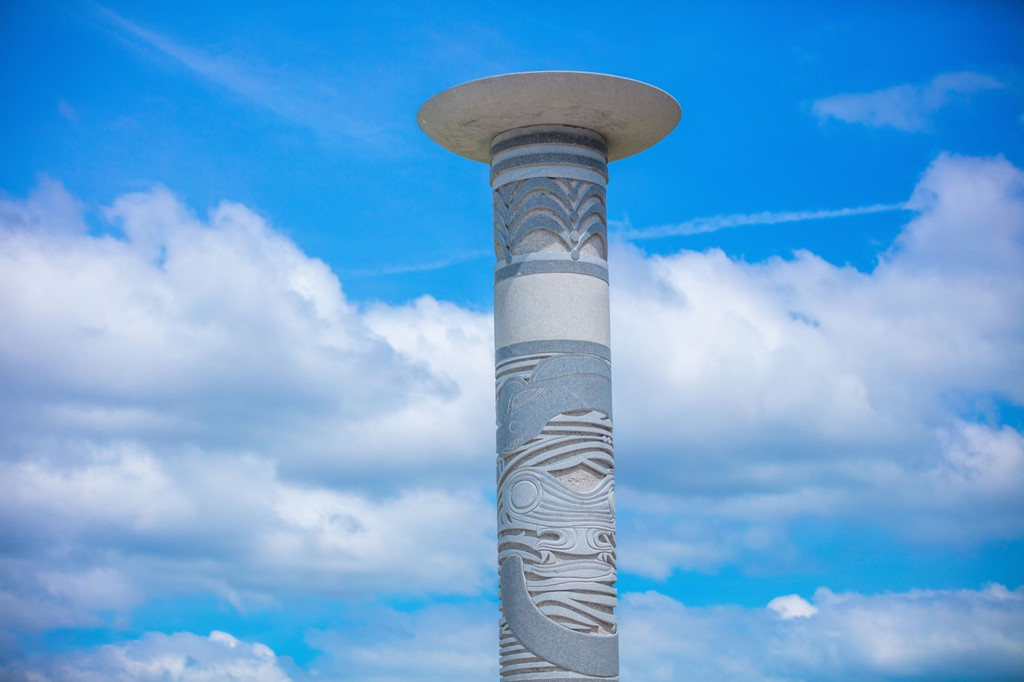 东极广场是我国陆地领土东端的地标性建筑,背倚祖国、面向东方,三角形的河口沙洲形状如同锋利的军舰舰艏,劈波斩浪。