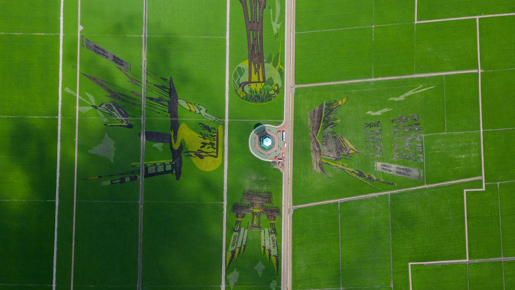 走进景区,大地为纸,水稻为墨,绘成一幅幅壮美的稻田画,农民们用稻田作“画布”,秧苗作“颜料”,种植出了收获的希望,用一个成语来形容万亩水稻公园,那就是“秀色可餐”。