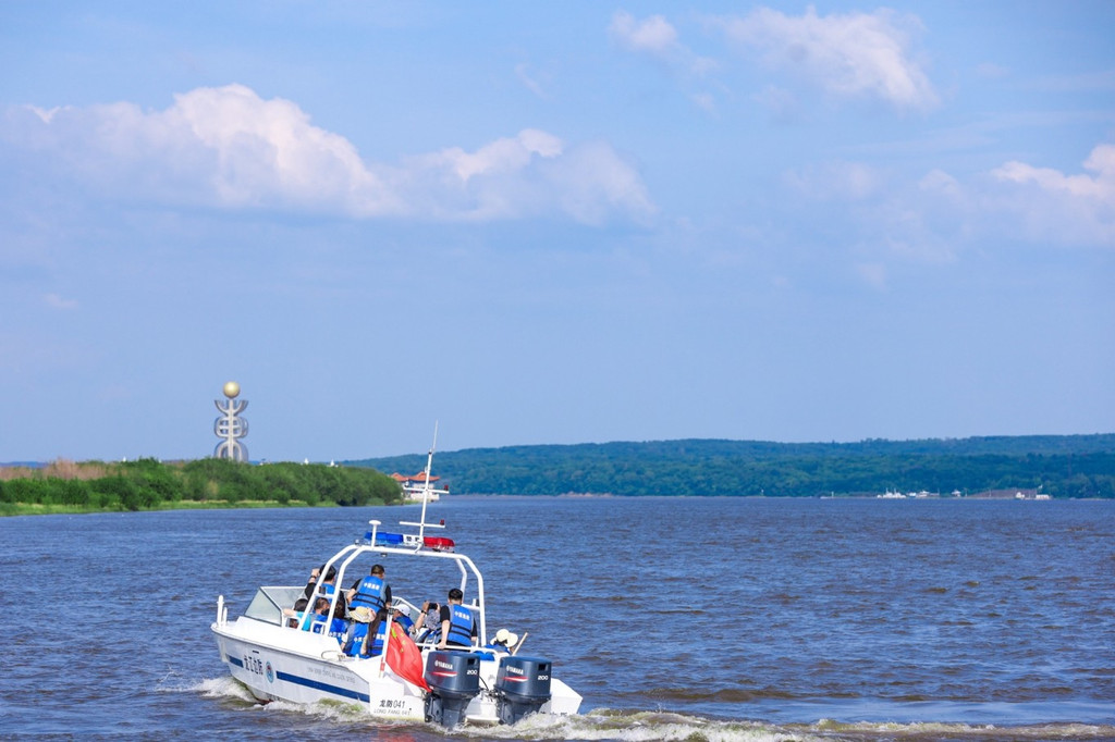 眺望东极广场还可以乘坐游船,这样的体验很特别。整个广场位于 抚远 水道与 乌苏 里江交汇处,两岸的景象尽收眼底,对面的 俄罗斯 小镇已经近在咫尺。