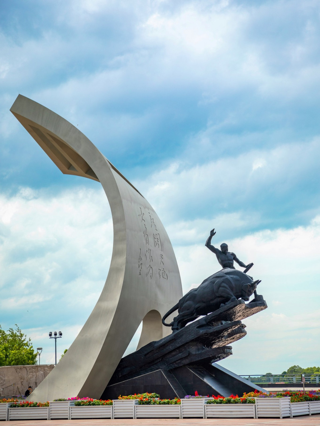 广场是开放式的,主题雕塑高15米,跨度12米,表面刻有毛泽东同志的题词:“广阔天地,大有作为。”帆状雕塑自然飘逸,凌空欲飞,象征着知青在艰苦岁月中思想、意志的升华。
