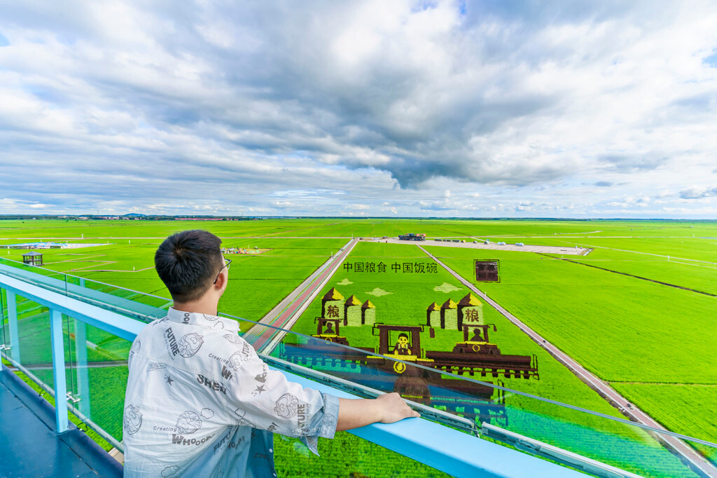在这里,你将能看到规模很大的稻田画, 富锦 万亩水稻公园的稻田画。