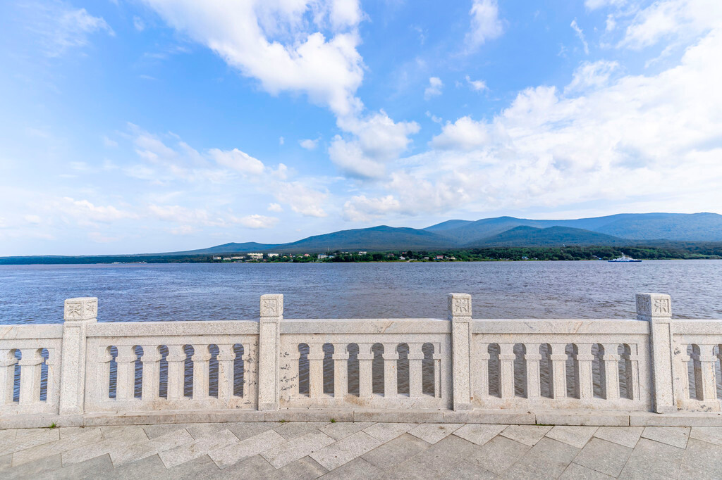 走上广场来到岸边就能够看到 黑龙江 和 乌苏 里江的交汇口,像对岸远票就能看到对面 俄罗斯 的卡扎克维茨沃小镇。