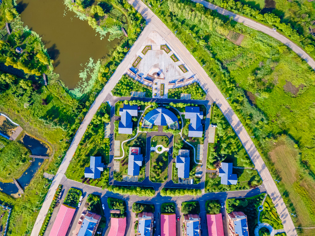 整个村子从高空的视角俯瞰,布局成一条鱼的形状。虽然是少数民族民俗村,但整个村子的建设非常现代化。