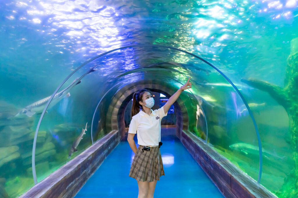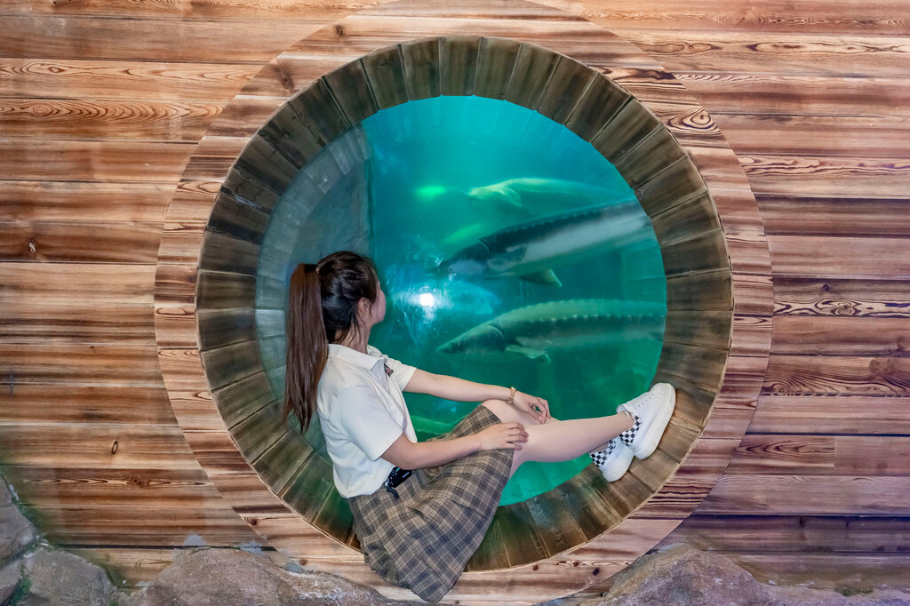 其中印象最深刻的展馆之一,就是 抚远 市的鱼博馆,走进鱼博馆的一层,最先映入眼帘的内容,绝对会让你眼前一亮,在大 东北 ,竟然也有跟滨 海城 市一样的水族馆!