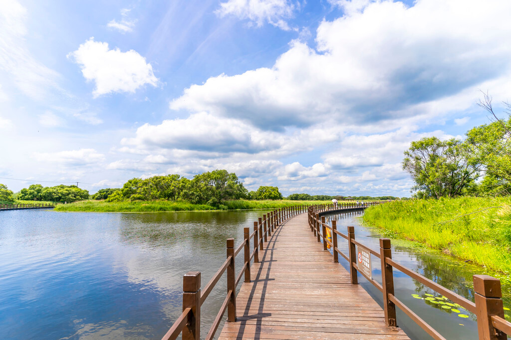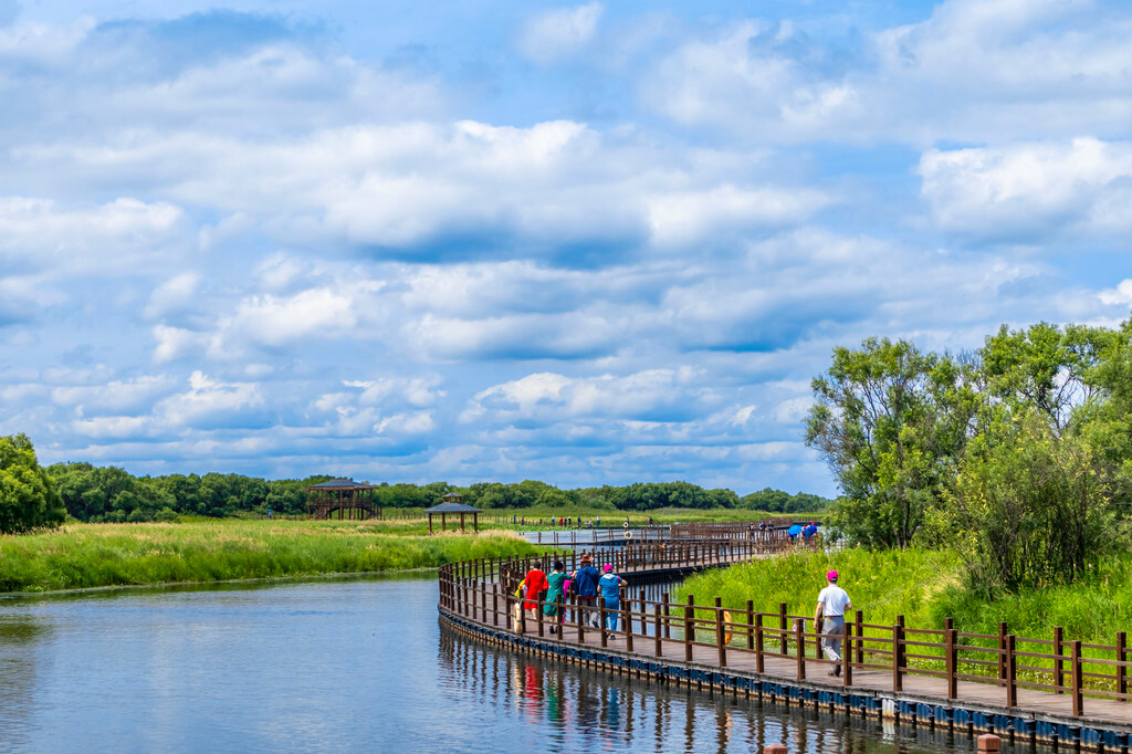 在黑瞎子岛湿地公园的湿地之上,有着长达2256米的悬浮式木栈道,让我们不仅可以观赏美景,还能走到美景中去,体会亲水,亲绿,亲近自然的惬意感受。