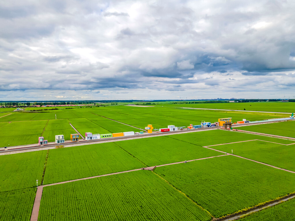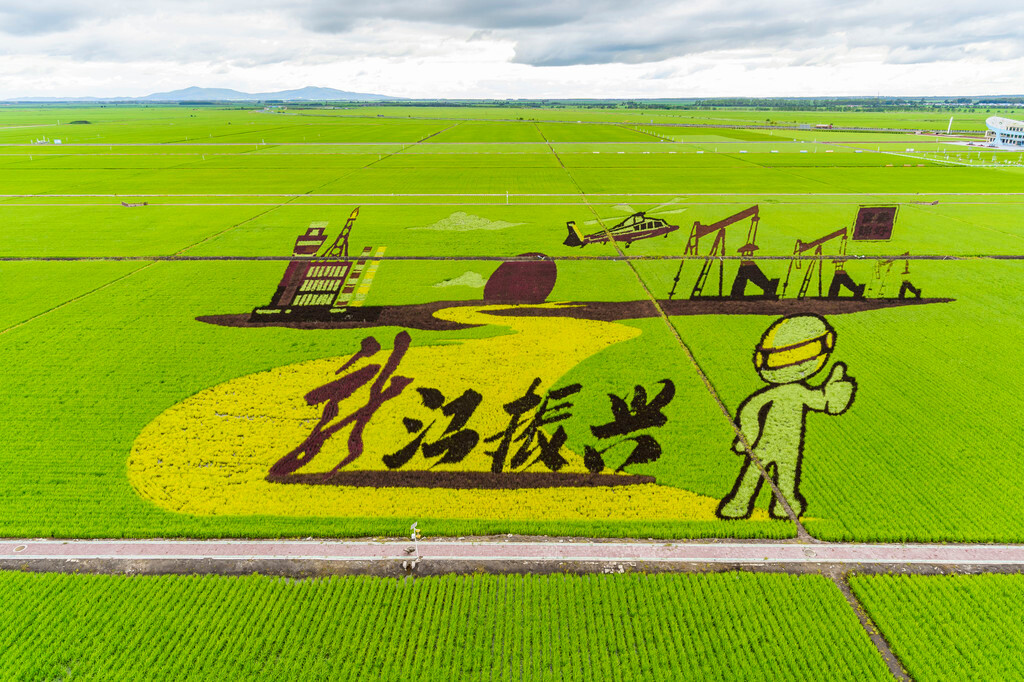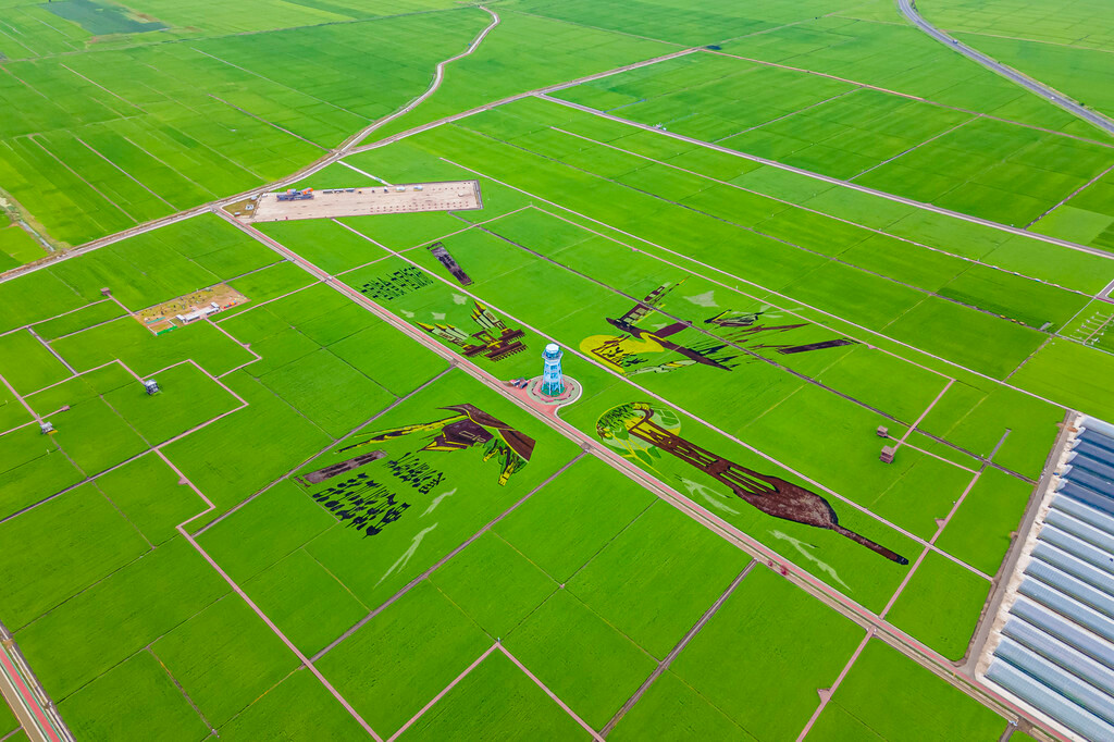 这里以黑土地为纸,以水稻为笔,勾勒出四幅超大的稻田画。