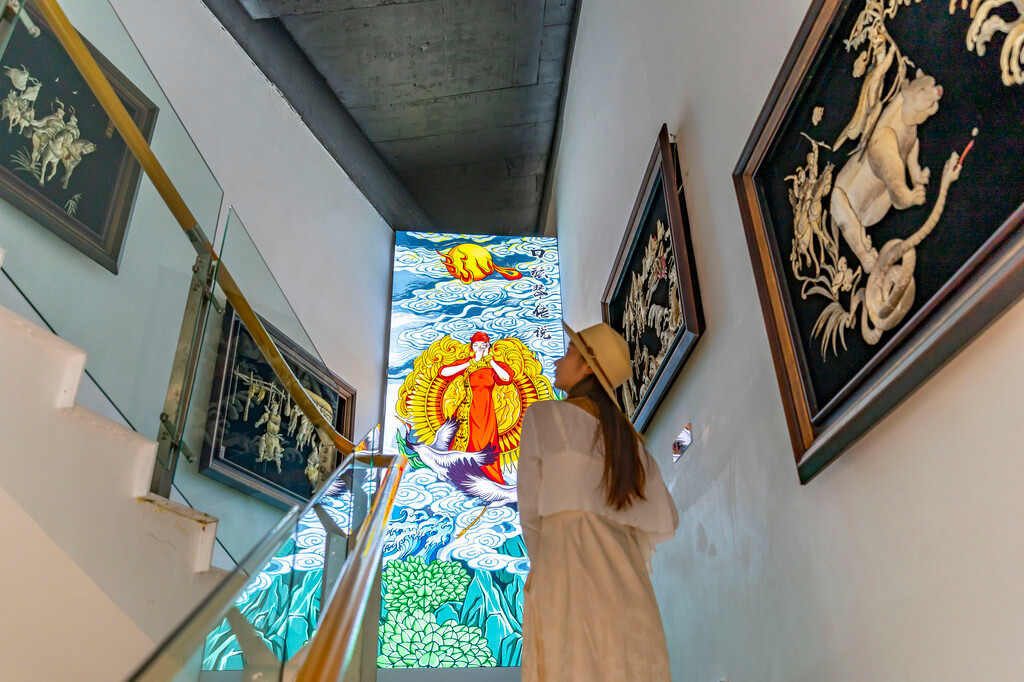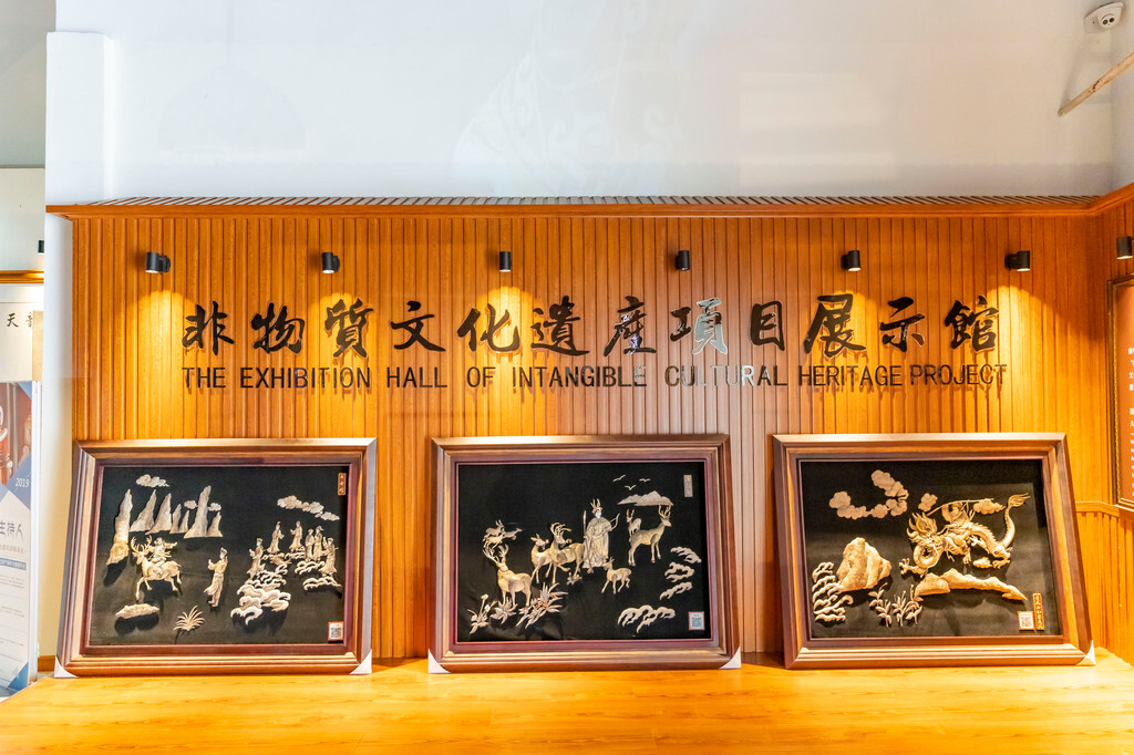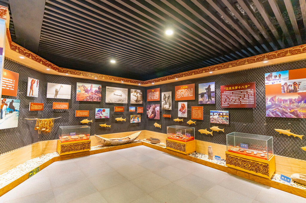 来到展馆的2楼,是非物质文化遗产展示馆(3A景区),在这里还可以亲自动手体验,鱼皮技艺制作。