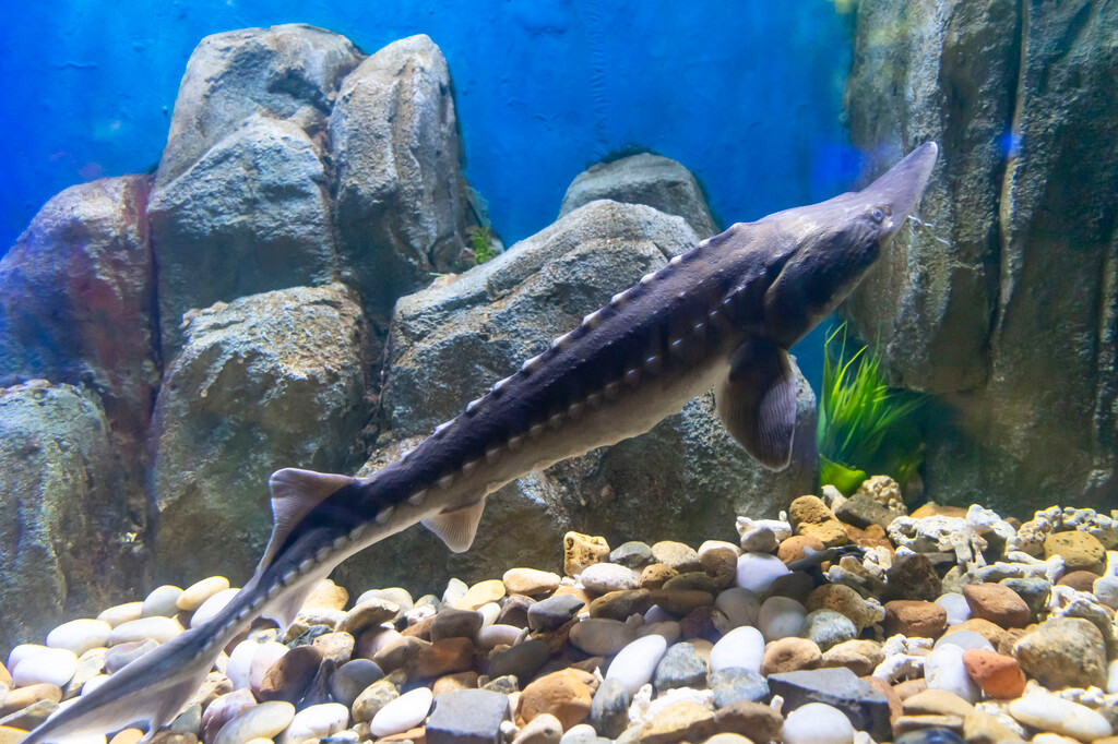 来到鱼博馆的二楼,则是超多种鱼类的标本和鱼类的相关百科展示,其中就包括“有 淡水 鱼之王,水中活化石之称的鳃蝗鱼标本”和体型长达三米的鲟鱼标本。