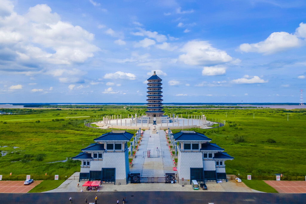 登上东极宝塔就可以尽览黑瞎子岛湿地公园的风光,还能够看到 俄罗斯 哈巴罗夫斯克 全貌和 黑龙江 , 乌苏 里江以及 乌苏 大桥等景观。