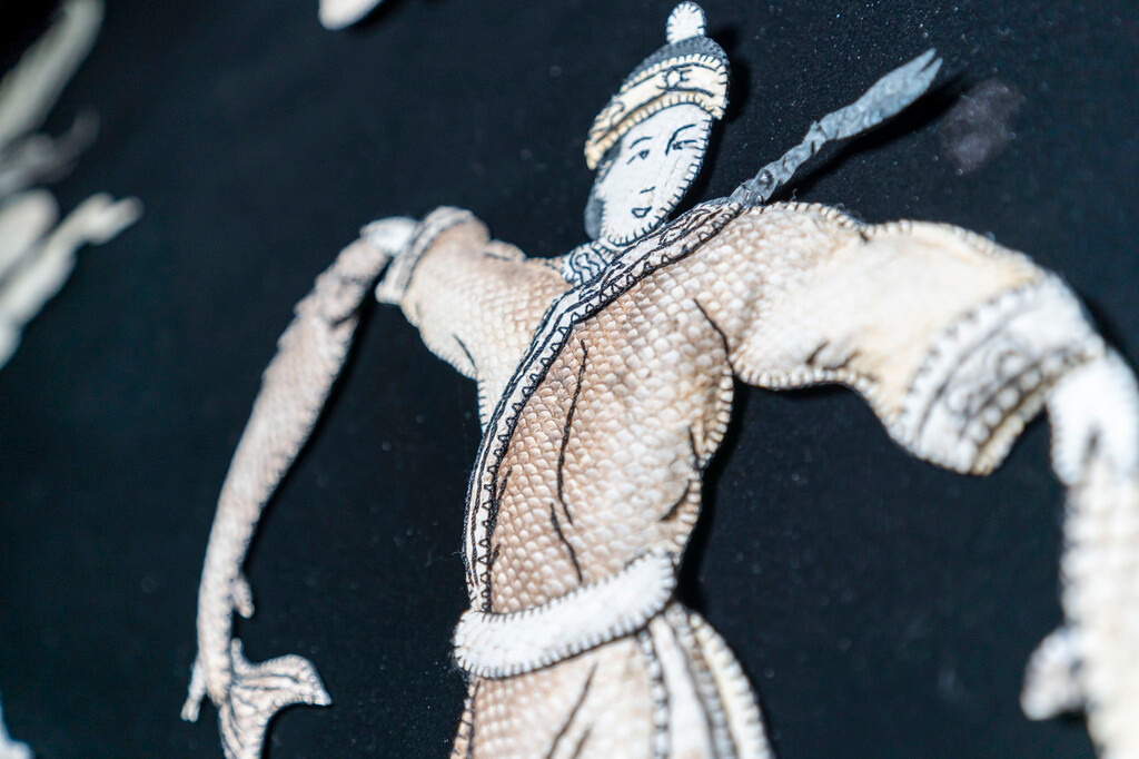 传统的鱼皮制作技艺,包括一整套复杂的加工过程,分为剥皮、干燥、熟软、拼剪缝合、艺术修饰等步骤。