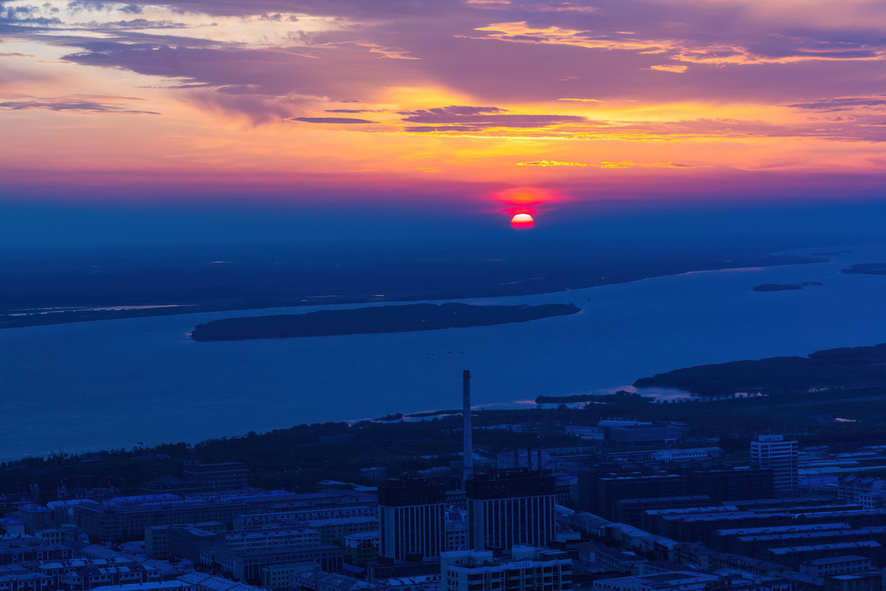 来抚远一定要看日出,看日出东极阁是首选最佳之地儿,凌晨,北京时间2时20分出发到东极阁,凌晨3时09分,晨曦晕染着大地,旭日从两江交汇处涌出,朝霞烧红半个江面。