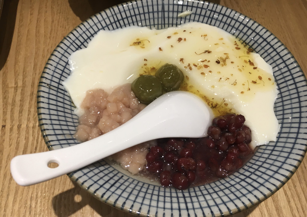 豆花简单美味,芋团芋圆红豆搭配着桂花的香味,使豆花十分爽口