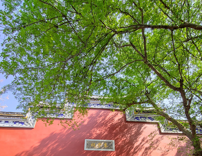 福州桃花竞相开放,红墙老树、灰砖石板路,衬托出古韵幽然气息的春光。