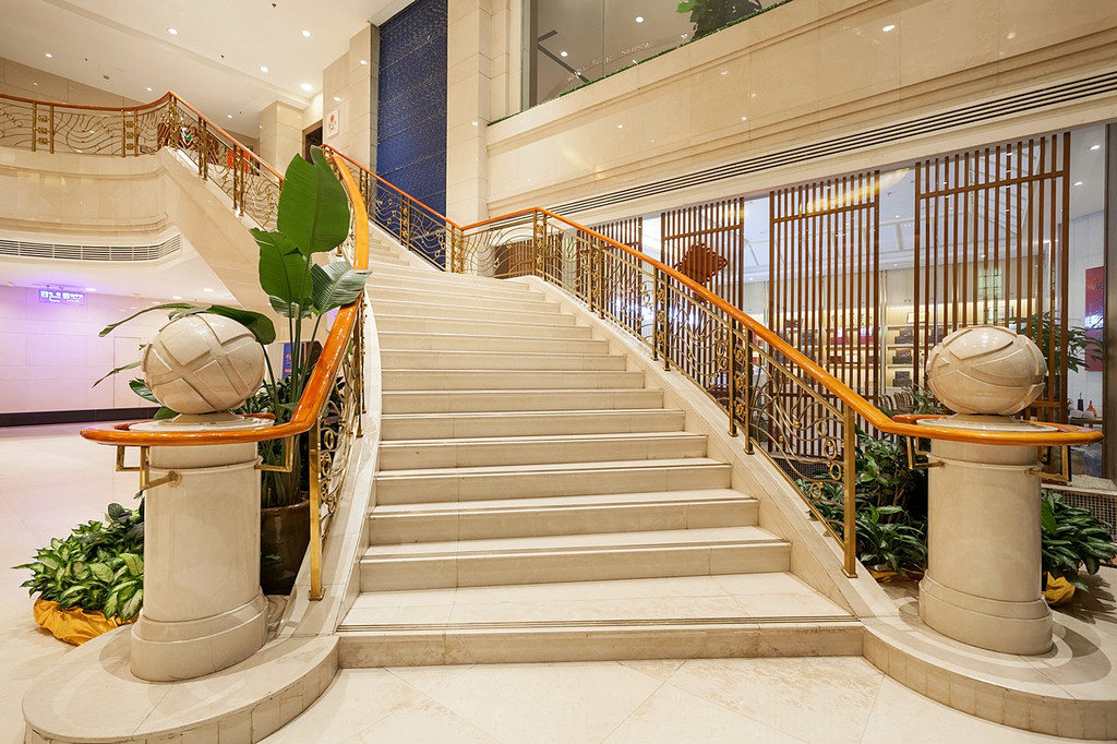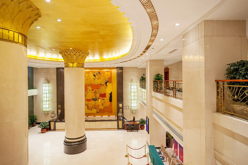 高挑的大堂显得很大气,前台地图背墙很有特色,复古的罗马柱,更增添了些许艺术氛围。