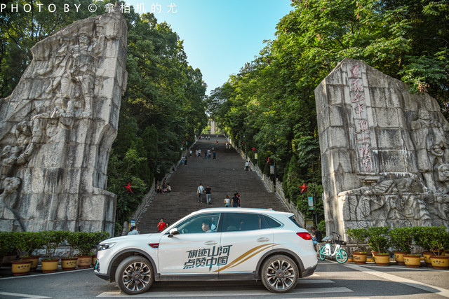 路过红军烈士陵园,车队整齐划一,气势如红。