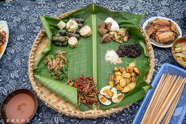 行走在土司城的街道上,还可以看见各种遵义特色风味小吃,我们车队在这家“簸箕饭”开启了美味长桌宴的味蕾体验。