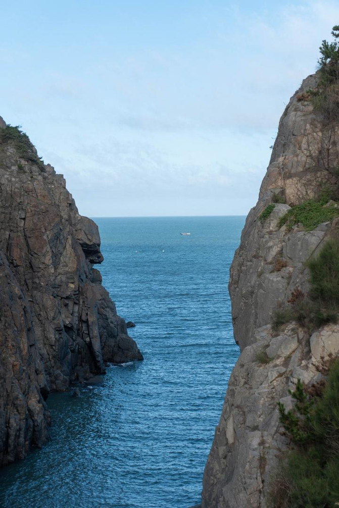 在旁边的仙人谷也是这样形成的,相比仙人井,仙人谷是可以直接下去的,可以在礁石上拍照,在以大海为背景下,这时也才发现原来人类在宽阔的大海中有多么渺小。