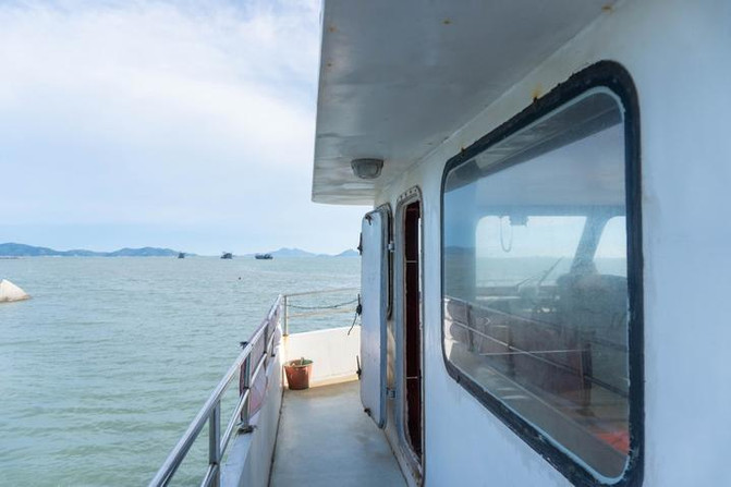 前往石牌洋需要乘船才可以上岛,第一站就被平潭的大海和天空所迷惑。也许是很久没有见过这么蓝的大海和天空,我门所有人都用相机和手机记录下平潭的蓝。