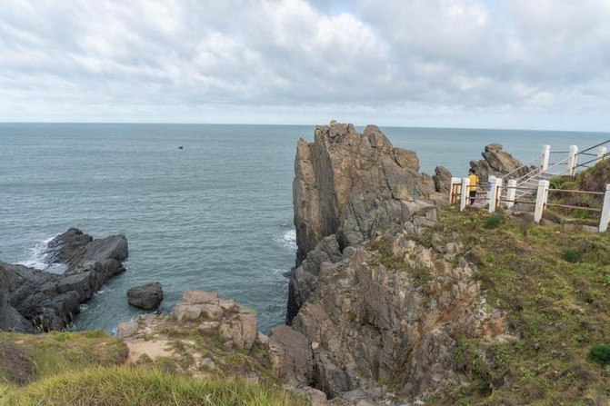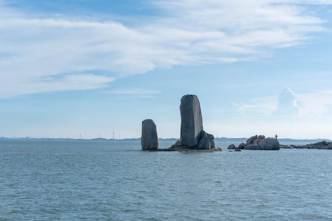 据说是这一对全国最大的花岗岩海蚀柱,远远望过去,就像一艘大船被风吹得鼓鼓飘扬的船帆,正劈波斩浪前进。
