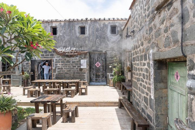 骑行回到北港村后,和朋友们在“风中旅行”驻足小憩,品尝了台湾友人在这里开的餐厅,饱餐了一顿大餐。在吃饭前还欣赏了原住民的表演,真的是集合了平潭与台湾风情的一个特色商店。