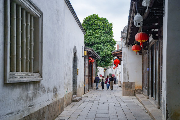 沿着石板路信步而走,两侧的建筑在眼前徐徐展开,仿佛走进了流动的江南画卷里。迎面的妇人缓缓走来,脸上洋溢着亲切的笑容,依稀间能透过皱纹看到时光流淌的痕迹,未施粉黛,真实而动人,让人倍感岁月静好。