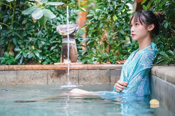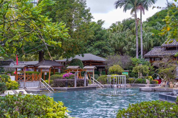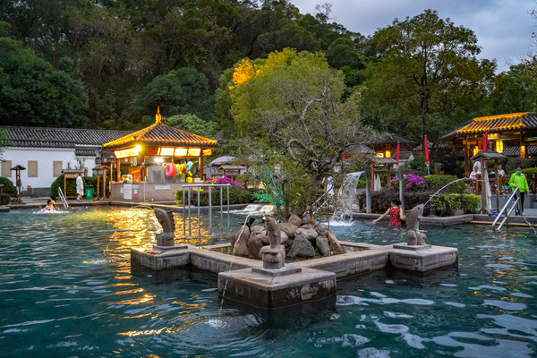 漫步园区,环境幽美,让人倍感恬静。暮色微凉,精致的亭台灯火阑珊,将水面照得楚楚动人,四周绿植相映成趣,颇有一番意境。这里的汤池水质清澈,富有多种矿物质和微量元素,保健养生,水质极好。园内设有玫瑰花泉、柠檬池、红酒池、咖啡池、枸杞泉等,功效齐全。