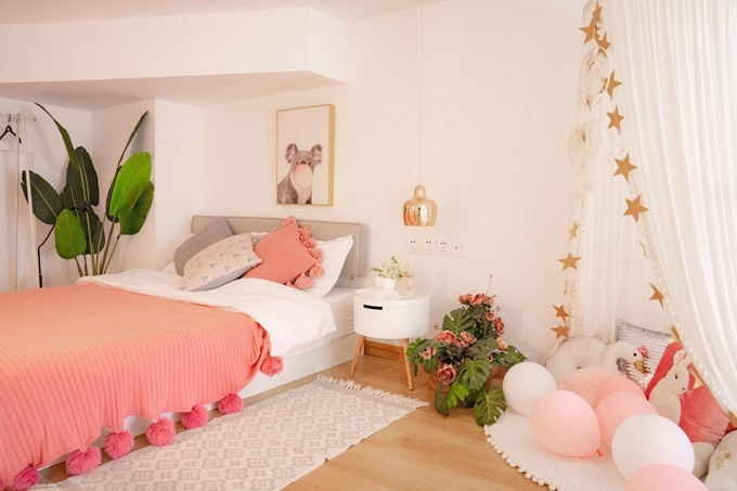 这次我选了一个loft民宿,就在西禅寺对面,华润 万象 城里面,当时在途家网上看到第一眼,就喜欢上了。装修较粉嫩清新,属于欧式风格,有些小摆件让人感觉特别舒服,楼下是洗手间,开放式厨房,但不能做饭,只能烧水煮个泡面什么的,楼上是卧室,功能分区很明显,洗手间也蛮干净的,除了床比较短以外,被子比较短以外,基本没其他大的缺点。