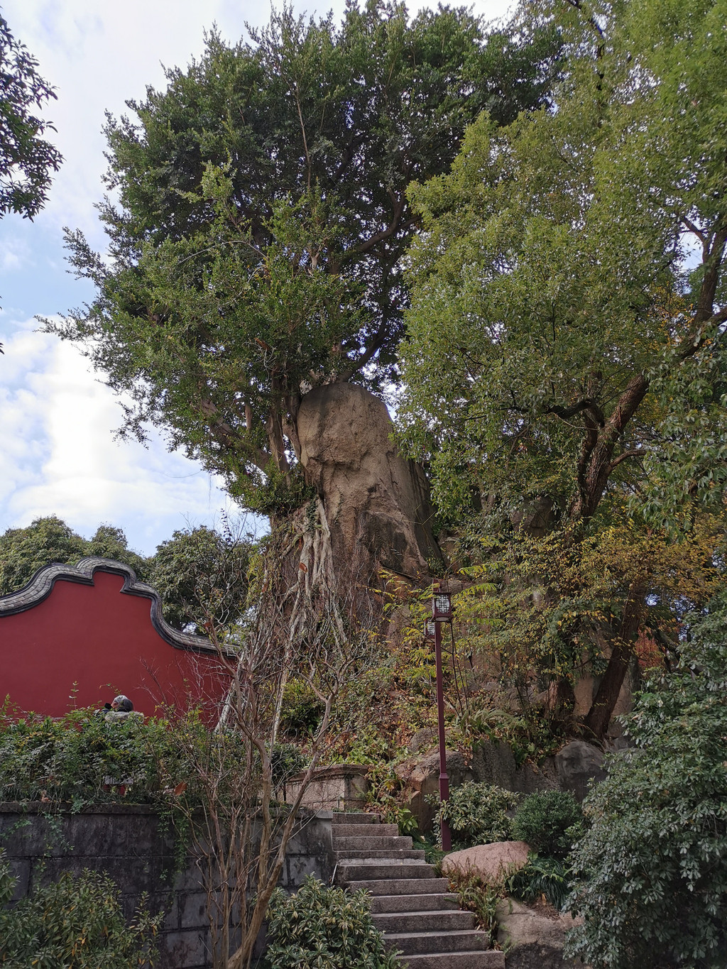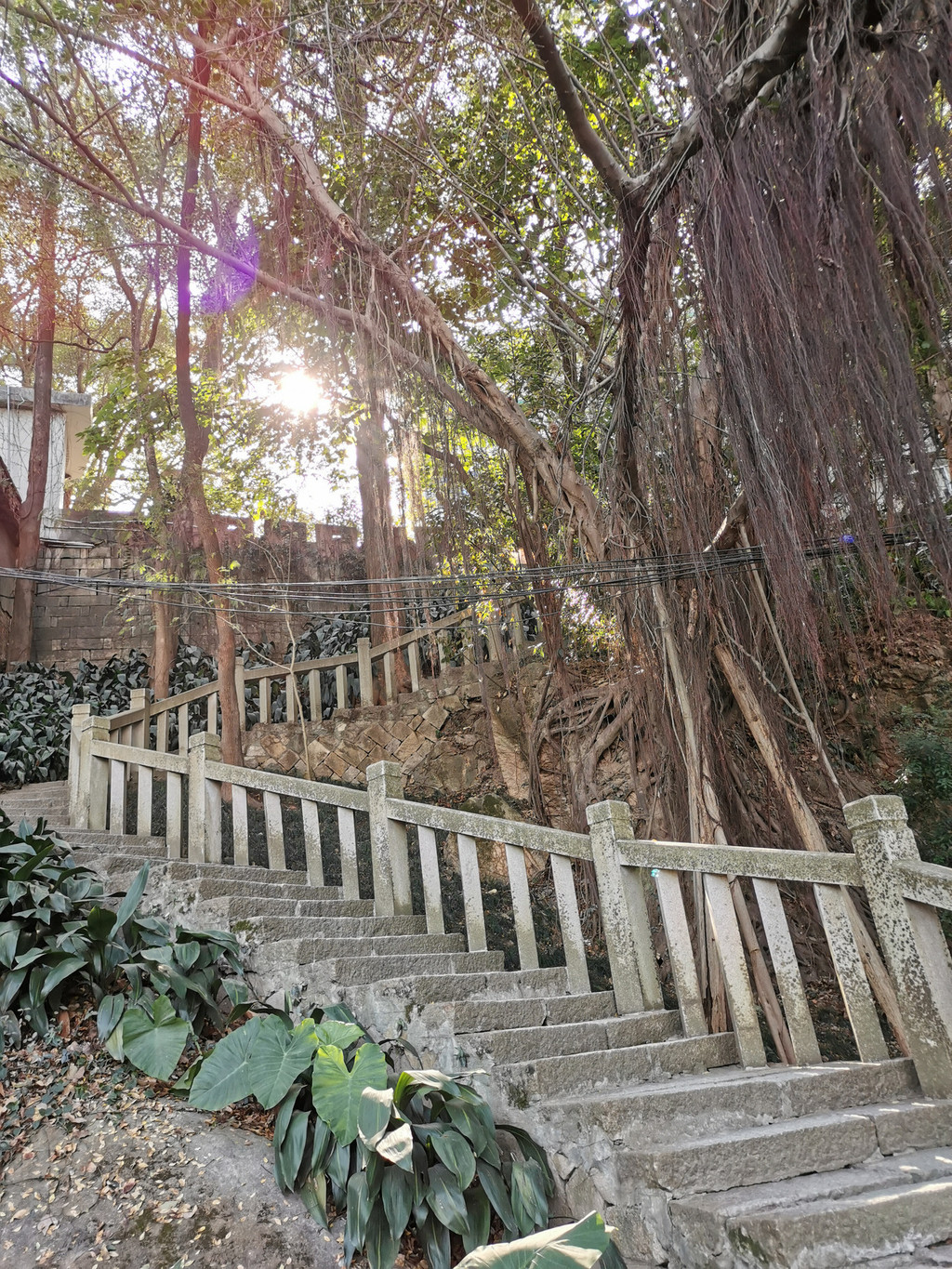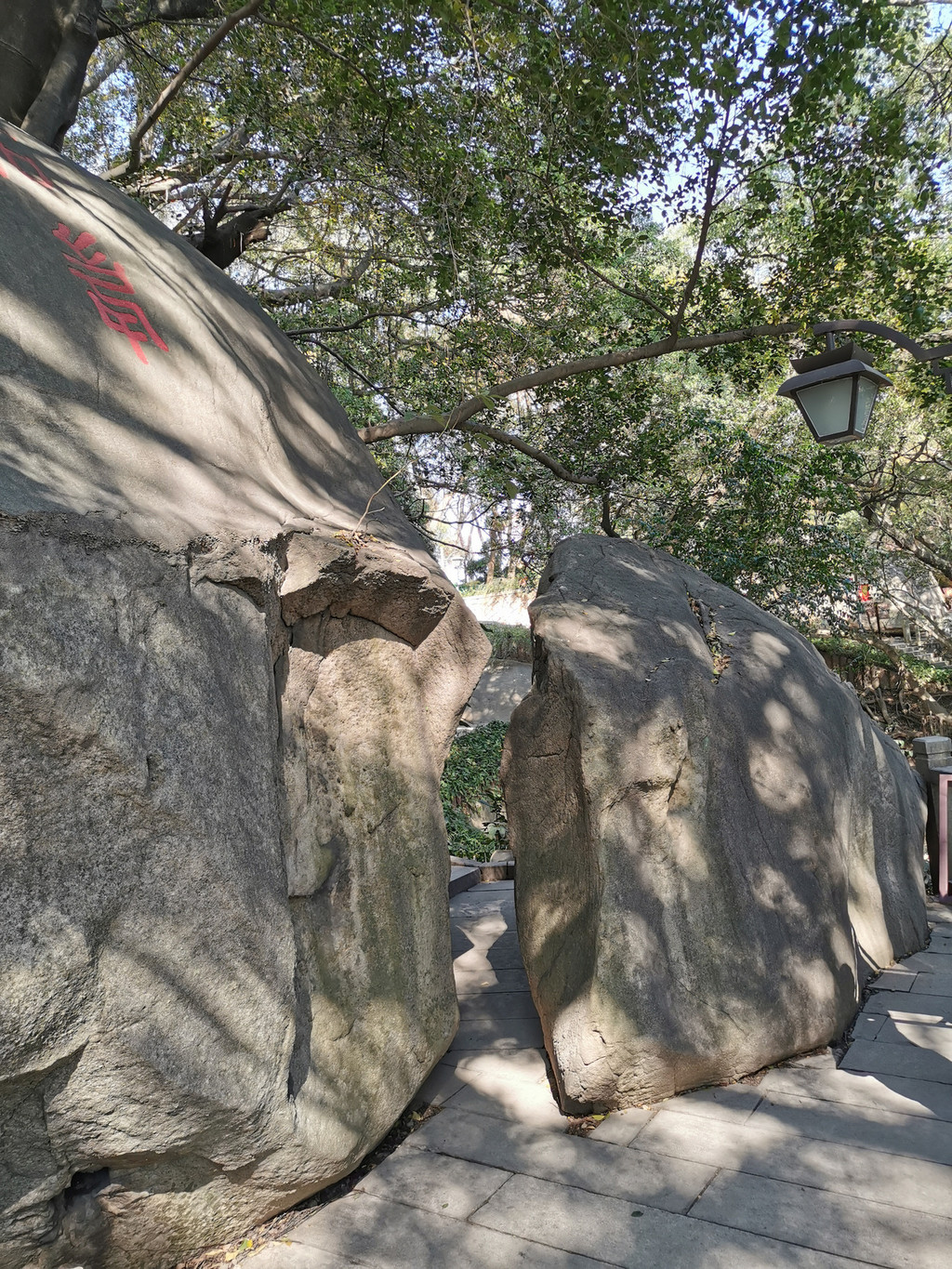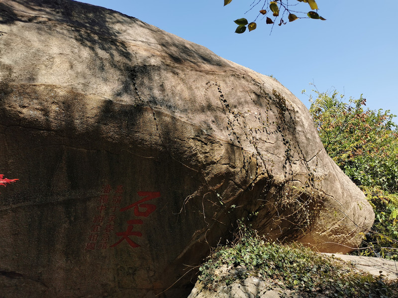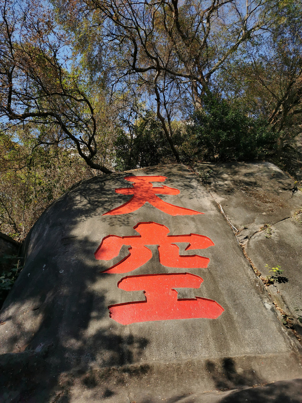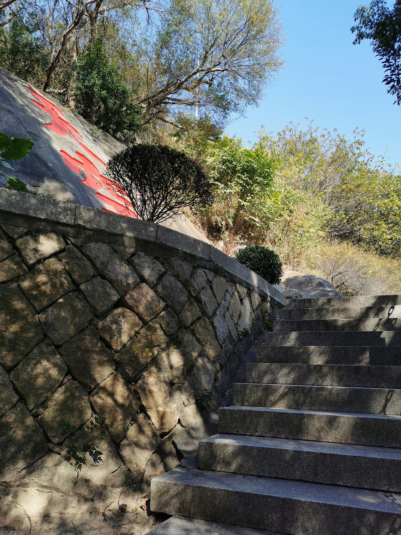 慢慢找,抬头一看,只有一个“天”字。顺着台阶往上走,终于看全了。