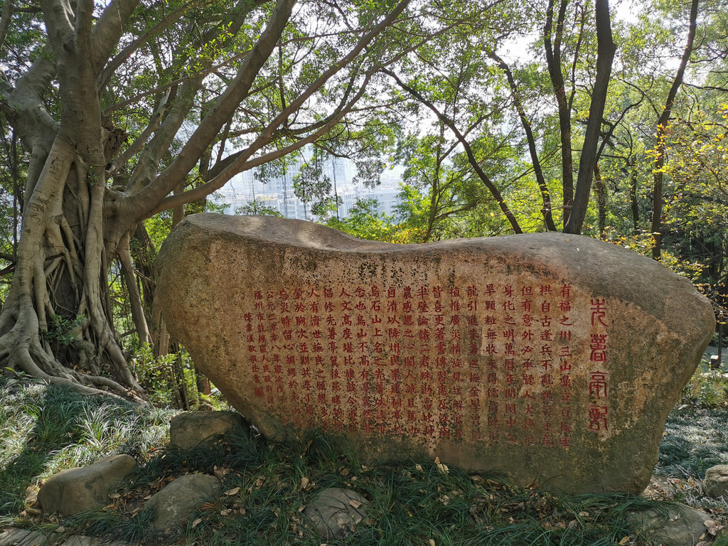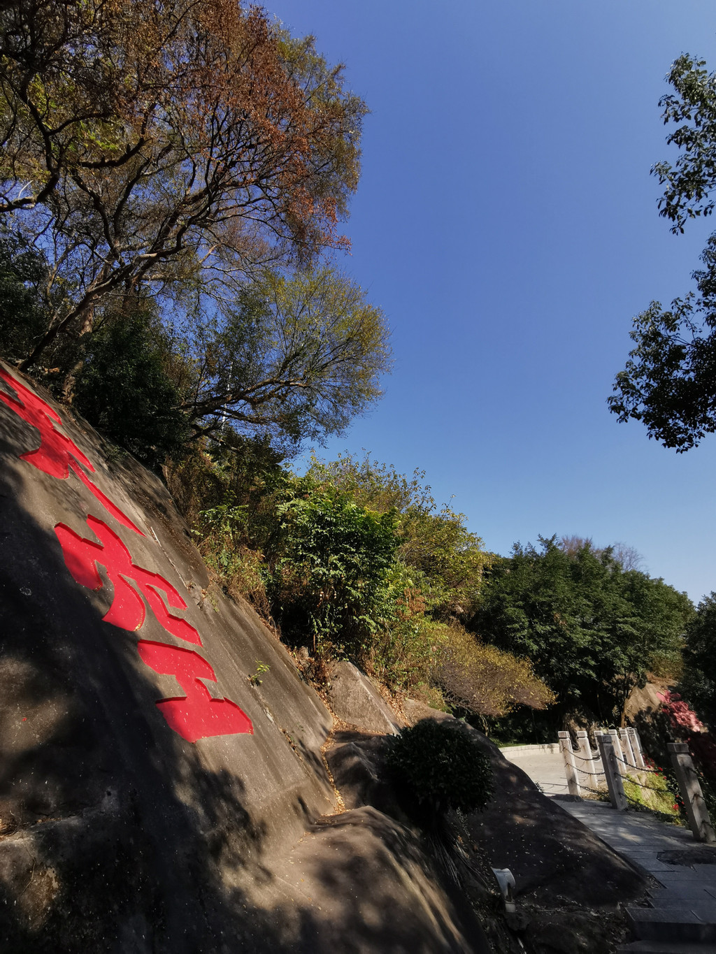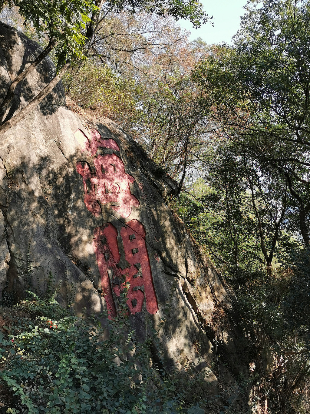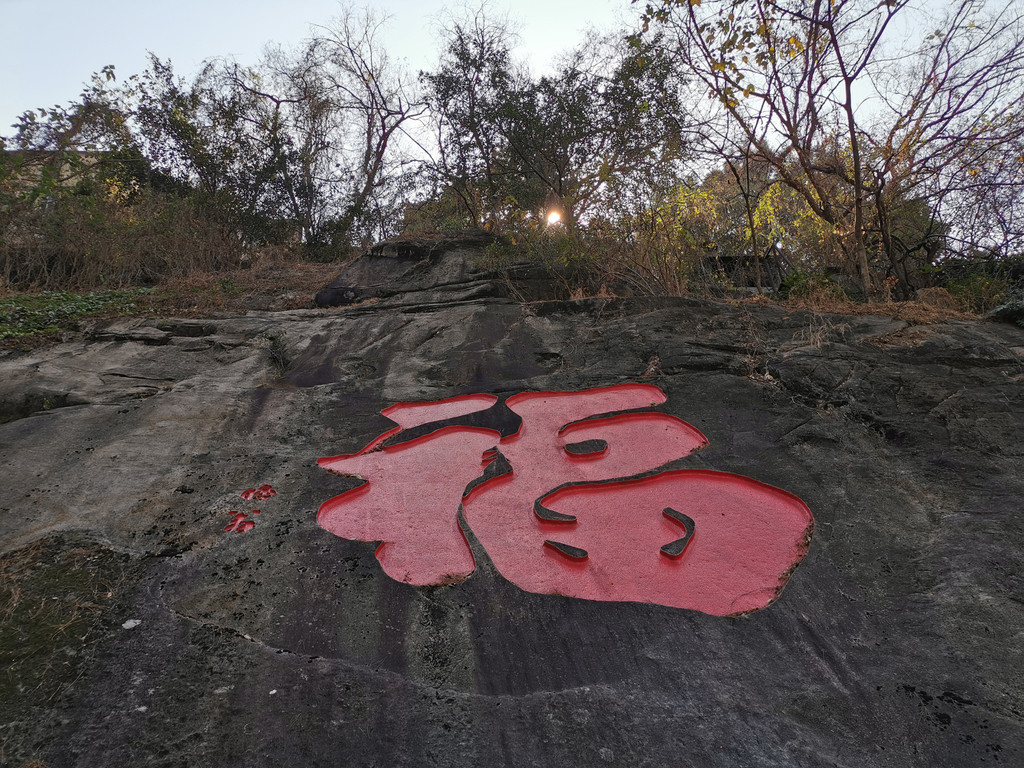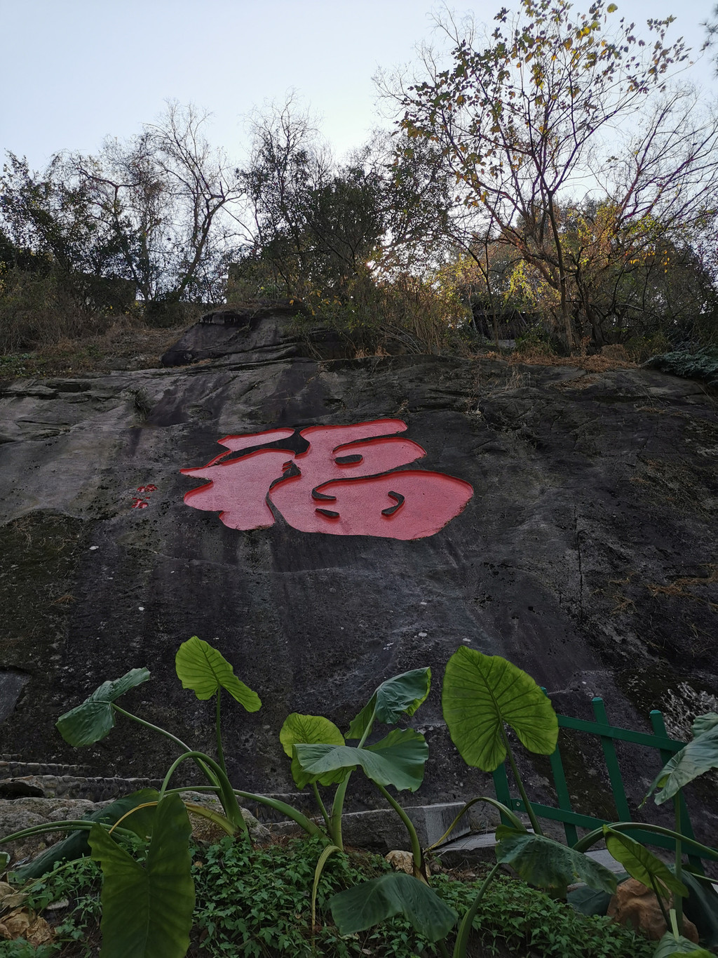 福字坪。“福”字长宽约4.25米,朱熹手迹,是福州最大的单字摩崖石刻。