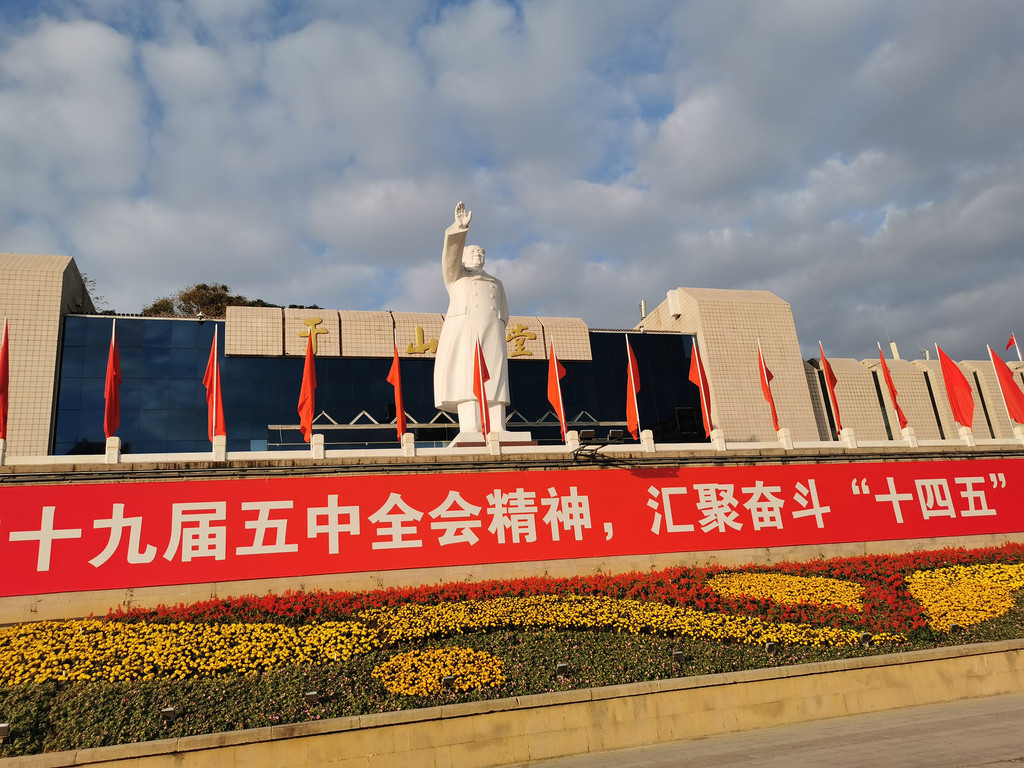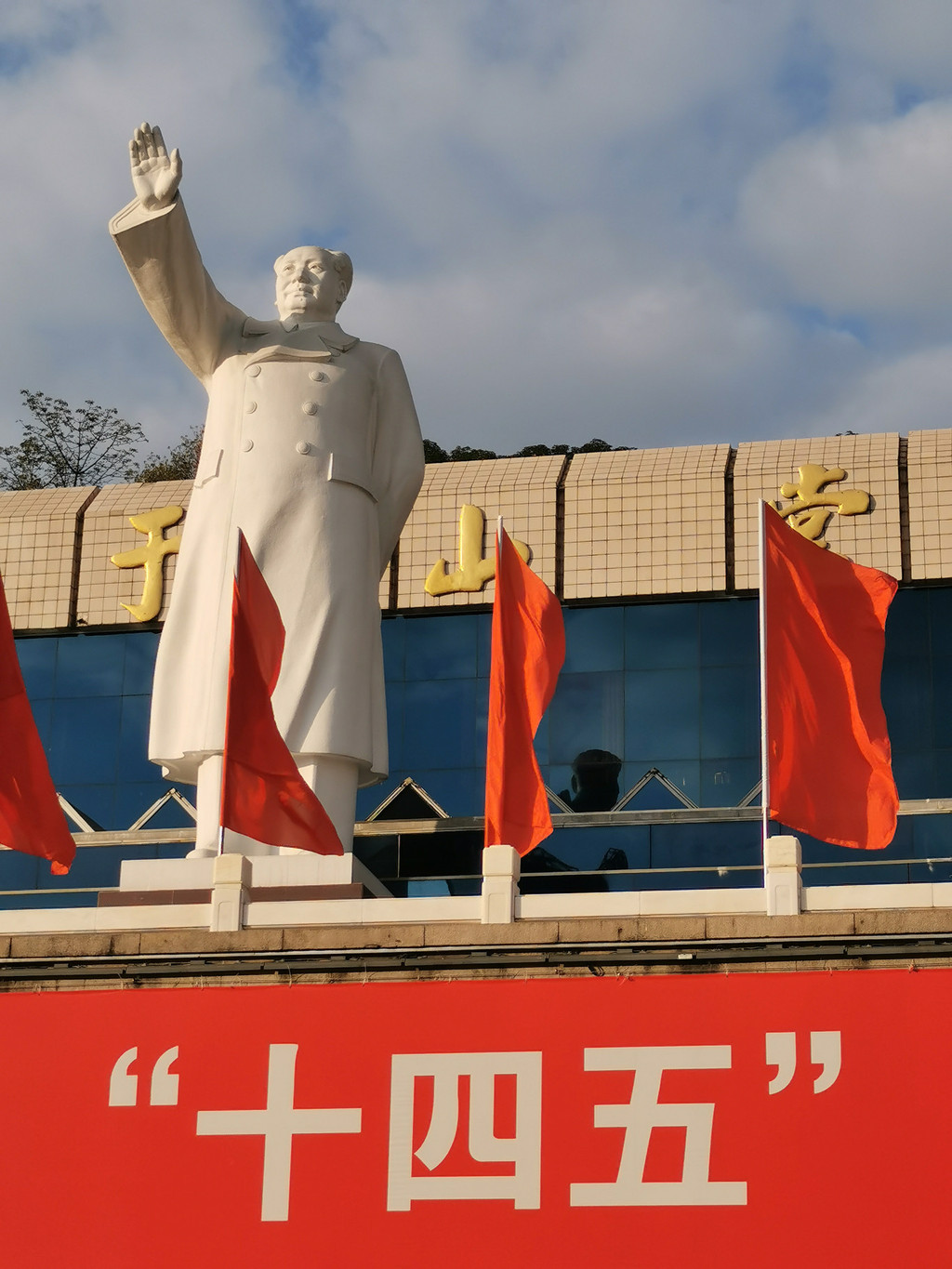 于山堂,福州五一广场毛泽东纪念馆,建成于1969年,竣工时名称为“毛泽东思想胜利万岁展览馆”。汉白玉毛主席挥手塑像高8.1米。