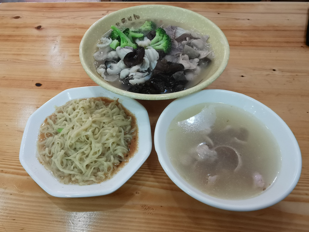 福州的特色小吃很多,有拌面、扁肉、捞化、锅边糊等,中午我们先尝一尝拌面和捞化。拌面不硬,也不是很酥烂,有一股花生酱的味道。汤可以自选,有骨头汤、鱿鱼汤、鸭心汤、猪腰汤等。