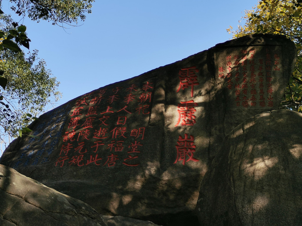 “霹雳岩”三个楷体大字是程师孟的手迹。古时乌石山独立高耸,四周低矮空旷,常有雷电直劈而下,传说这块石头就是雷劈而成的。