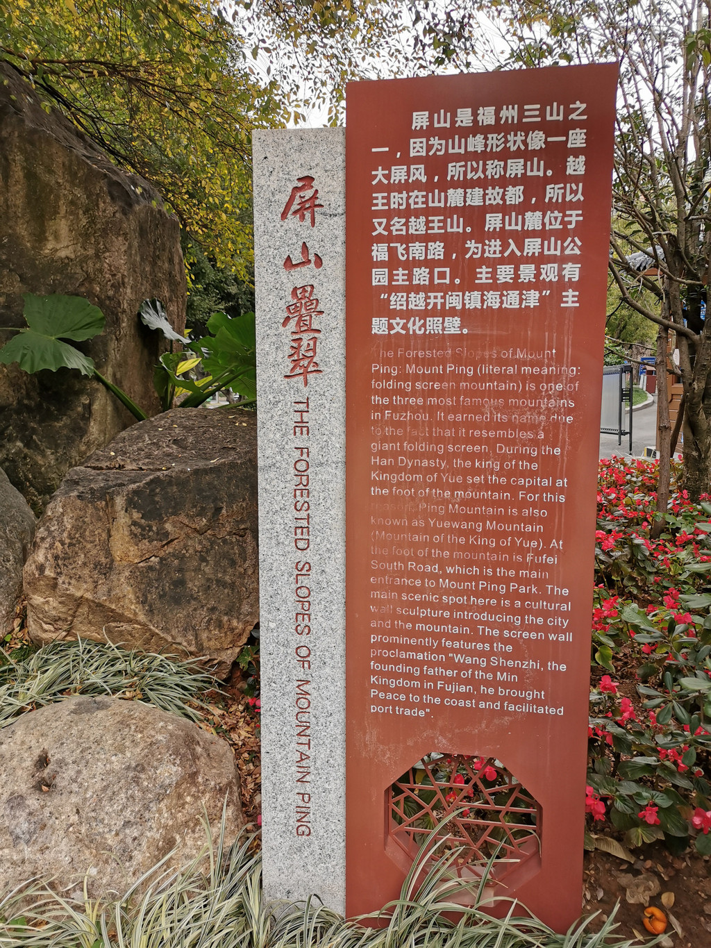 福州三山之一的屏山,因外形像一座大屏风而得名。山麓曾建有越王故都,又名越王山。