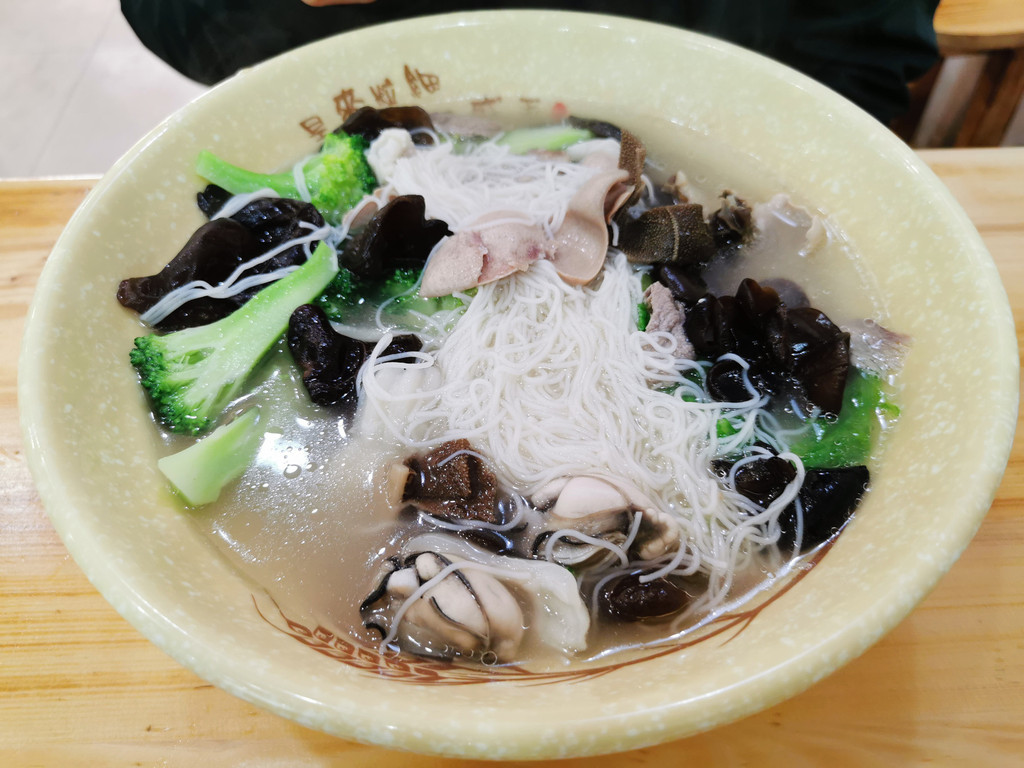 捞化就是捞米粉,多使用原产莆田的兴化米粉,质地很细,一捞就熟,俗称“捞兴化”,后来顺口简称为“捞化”。配料种类很多,如木耳、香菇、百叶、猪血、大肠、牛肚、海蛎等。今天这家店食材很新鲜,对榕城平添一种好感。