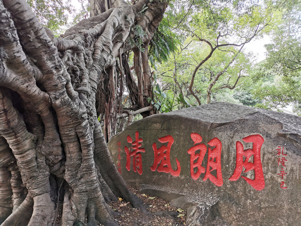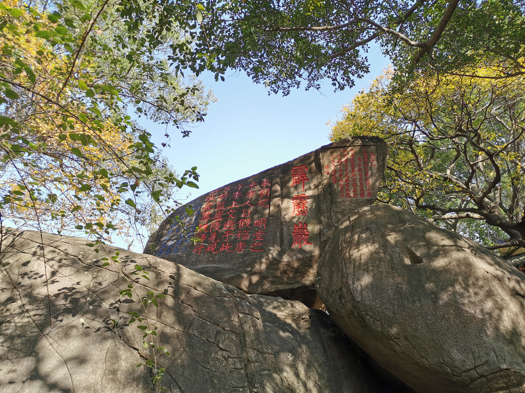 这里的摩崖题刻也很多,其中以“海阔”“天空”巨幅题字最为著名,据说根据康熙皇帝的笔迹雕刻而成。