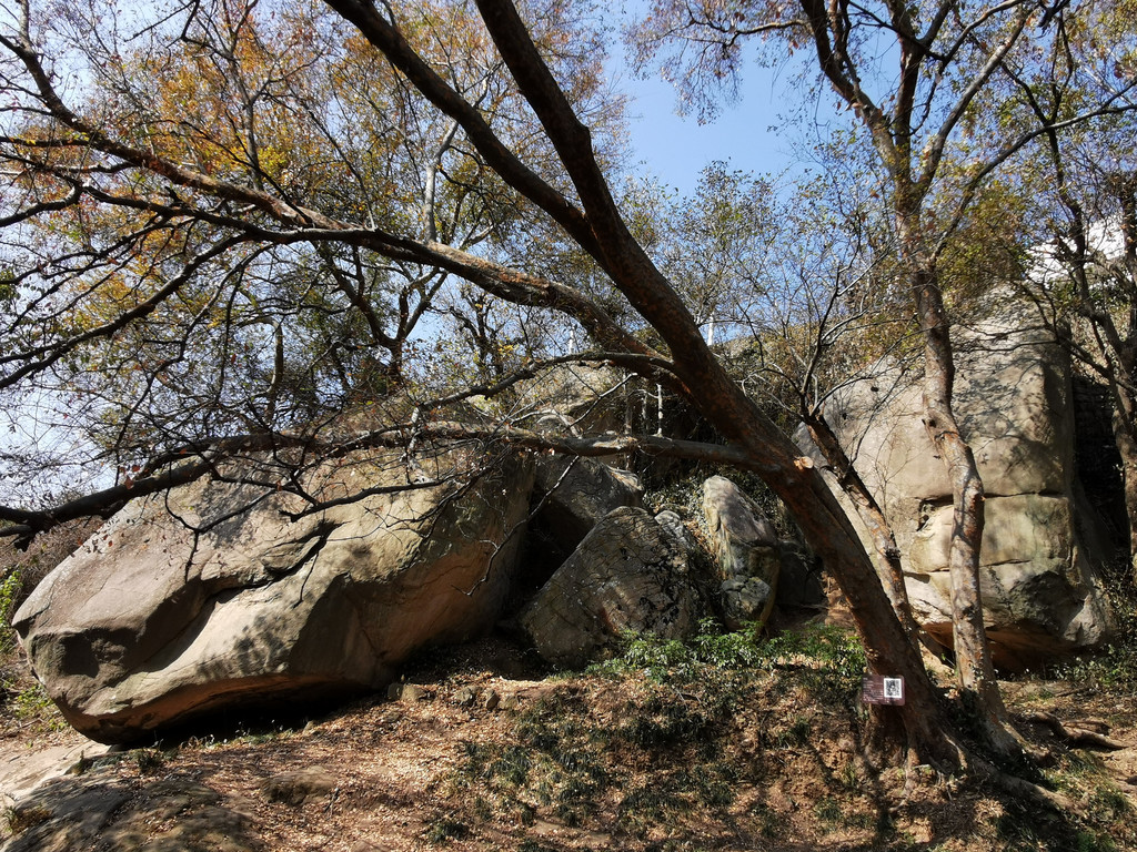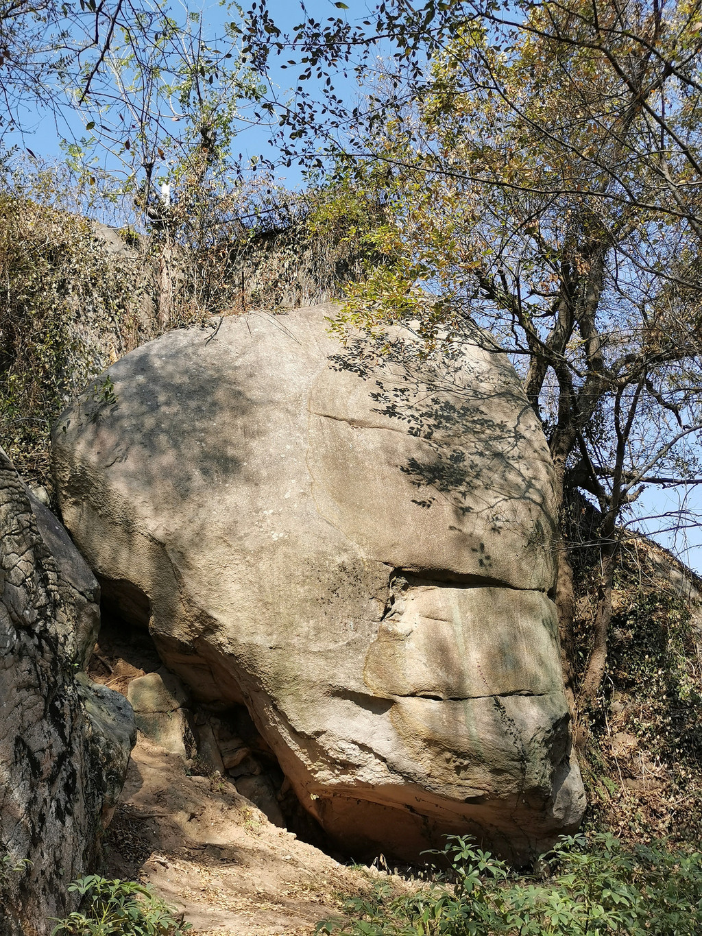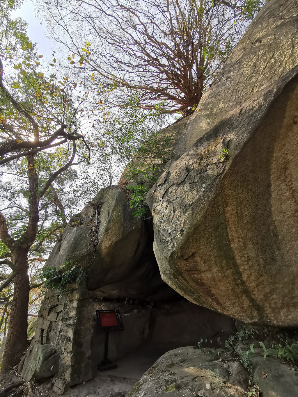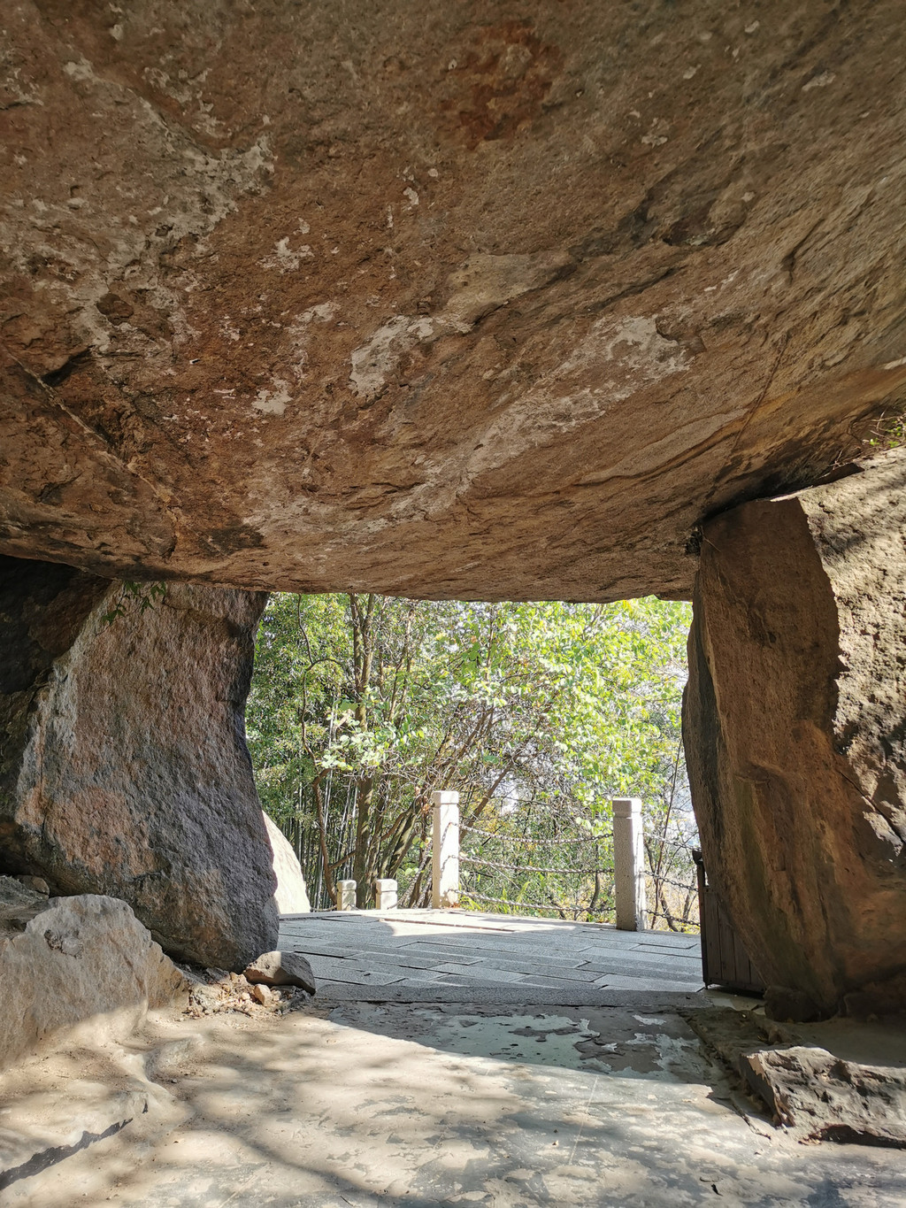 从外面看,三块花岗岩相互支撑,开口不大,内部却别有洞天、空间宽敞。