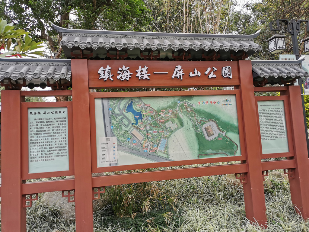 山高62米,山顶有城门样楼“镇海楼”,是当时福州最高的建筑物。样楼就是样板房,其他城门楼都按这个样子来修建,所以屏山也被称为样山。