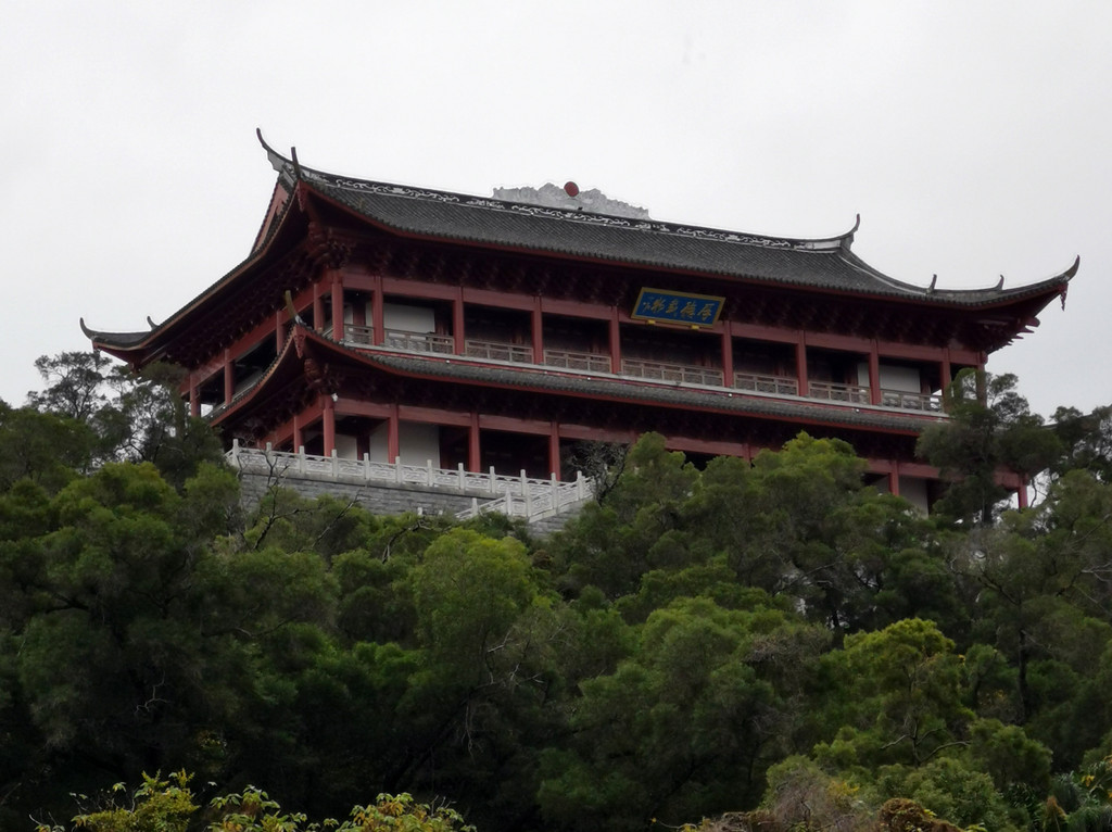 镇海楼只能远远看一眼,朱墙灰瓦,飞檐翘角,匾额题字为“厚德载物”。该楼曾经是福州古城的最高建筑,海船昏夜入城的标志。当时到福州的海外船只,行至鼓山脚下,均以镇海楼为“准望”。