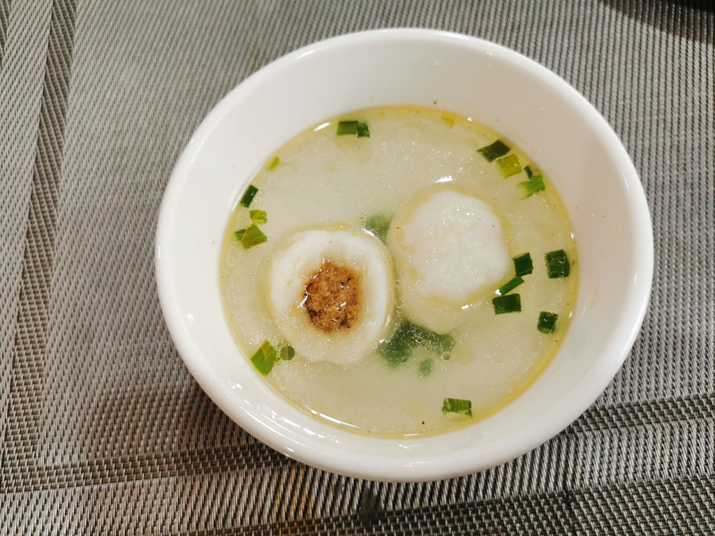 锅边糊是一种汤,很鲜美,里面有蚬子、海蛎、木耳、香菇、虾米等佐料。鱼丸很结实,有弹性,由鳗鱼、鲨鱼或马鲛鱼等海鱼肉加淀粉搅拌,包上猪肉馅制作而成。