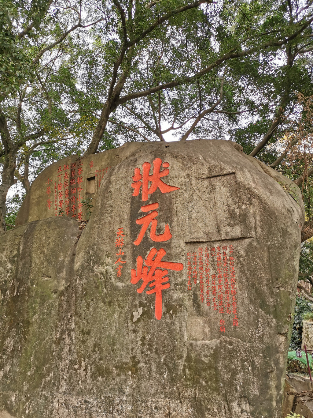 状元峰又名“鳌顶峰”,于山最高峰,海拔58.6米。南宋绍兴年间闽县人陈诚之曾在此苦读而考中状元,因而得名。岩壁上有历代名人题刻。